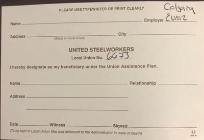 If you require to update your USW Beneficiary card, please notify a member of the executive and they will provide you with a new card or drop by the safety Office and one will be provided to you.