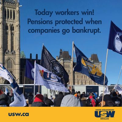 “Year after year, we brought to MPs and Senators the heartbreaking stories of workers who had their pensions robbed,” said Marty Warren, United Steelworkers (USW) National Director for Canada. “We demanded that retirees would no longer be left at the back of the line in cases of bankruptcy. Today, we finally won.”